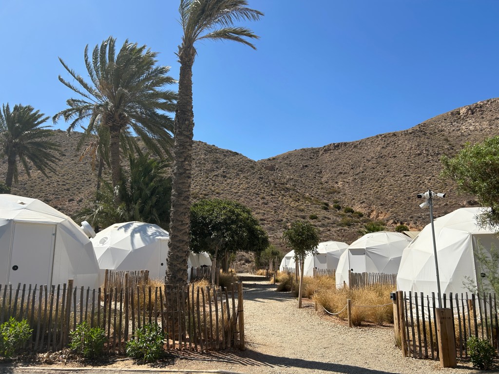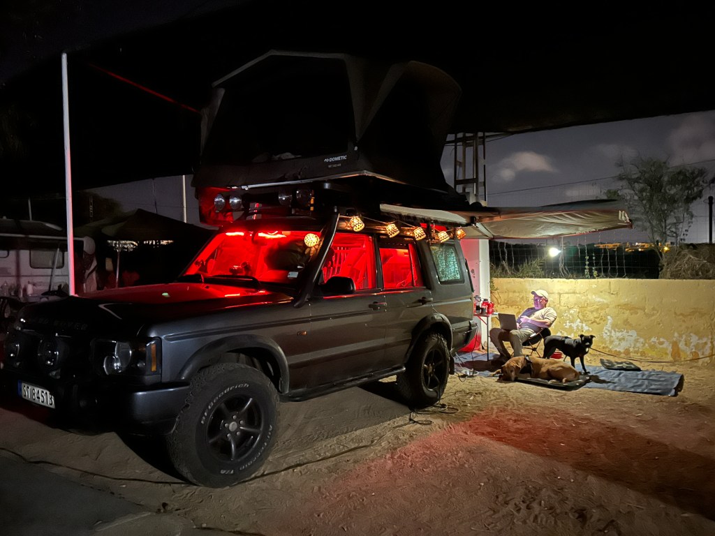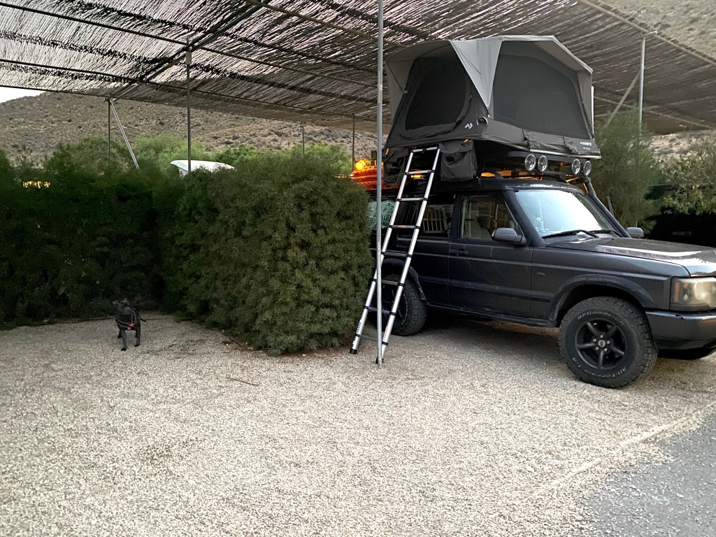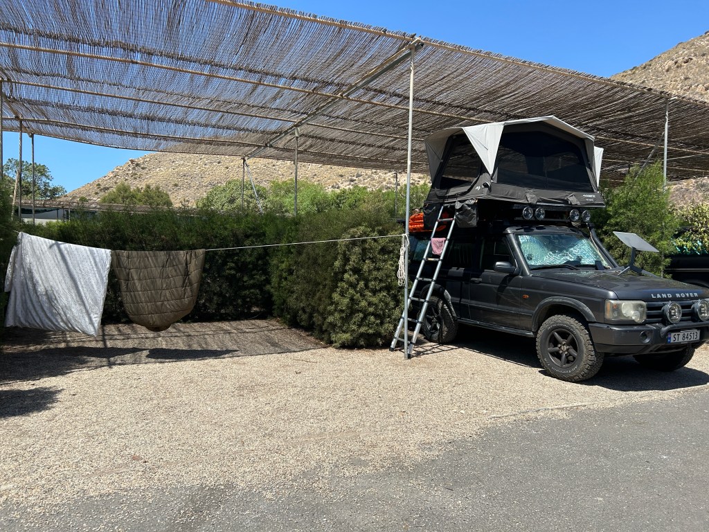 Det var begynt å bli sent og Lasse var gretten, så vi peilet oss inn på den nærmeste campingplassen Wecamp Cabo de Gata, like utenfor landsbyen Las Negras. Det var i grevens tid, for 100 meter fra inngangen, stoppet Lasse igjen, denne gangen med alle mulige nye varselamper og pingelyder vi aldri hadde sett eller hørt før. Han var nok sliten og ville hvile.