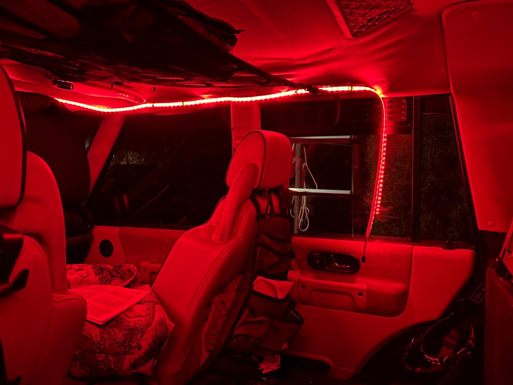 Tore monterte lyslist langs taket i hele bilen, slik at vi skulle slippe å hele tiden gå rundt med lommelykt. Og, han pakket ut og installerte filter i vannkannen «Lifesaver» som kan rense og gjøre hva som helst av vann til drikkevann. Nedenfor en video der han demonstrerer hvordan den virker. Praktisk, ikke bare på reise, men også hjemme.