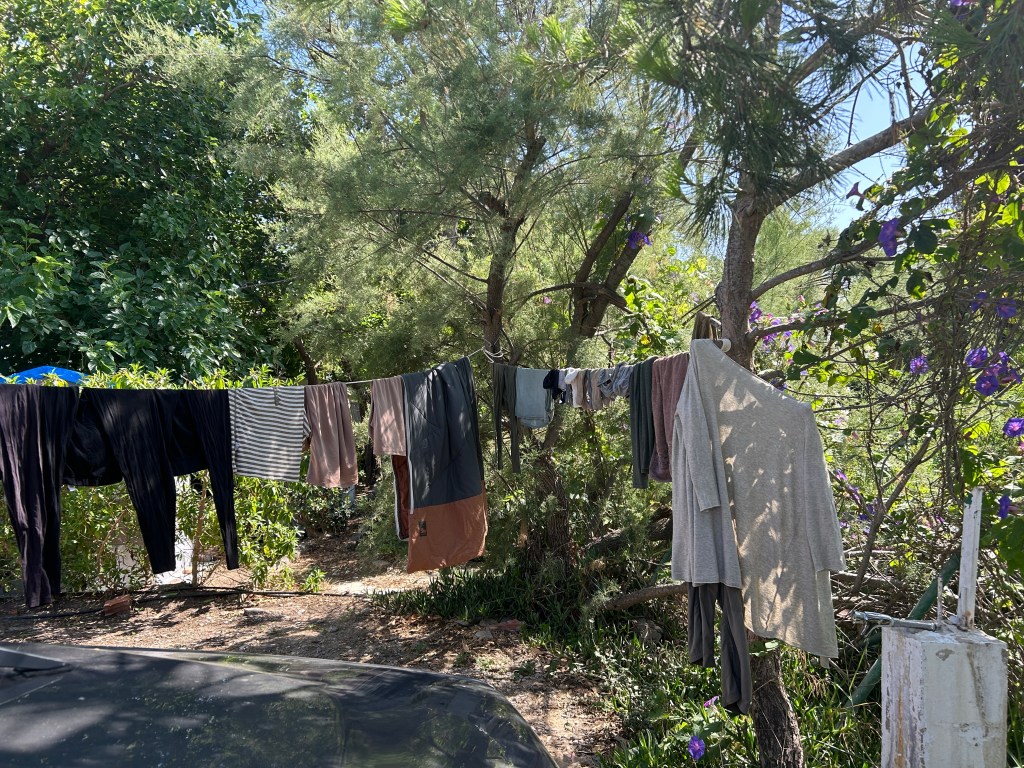 Vi hadde jo fått en så stor pitch med god plass, omringet av kasser med røde perlagonier og direkte aksess til stranden. Dessuten, vi måtte vaske klær og her hadde de vaskeri. Vi hadde pakket lett med lite klær og når du bor i en bil som er innsauset med veistøv, så blir du fort skitten. Vi bor og lever stort sett i fritidstøy (ikke grilldress), men har et antrekk til fint bruk, når vi skal ut blant folk.