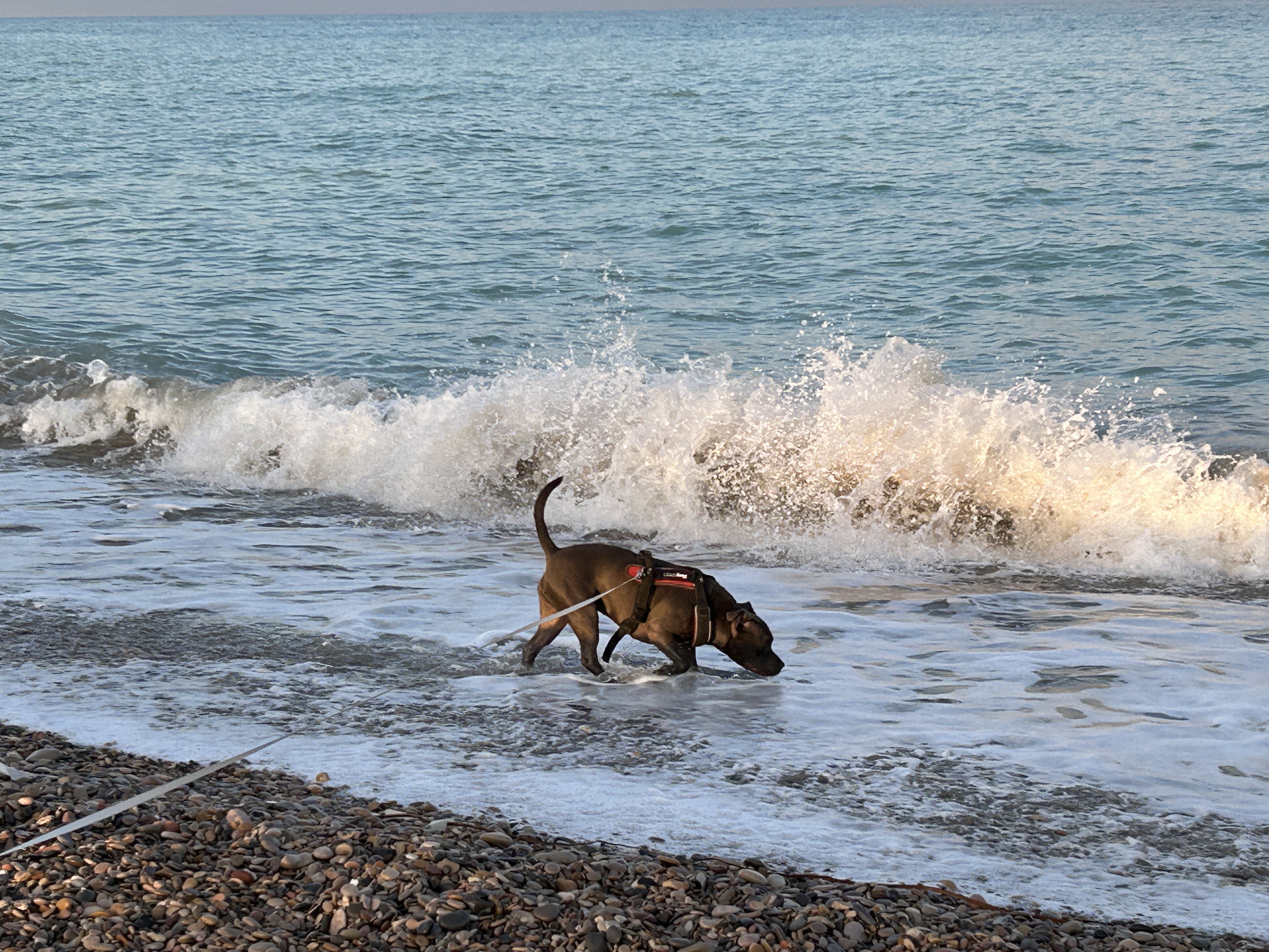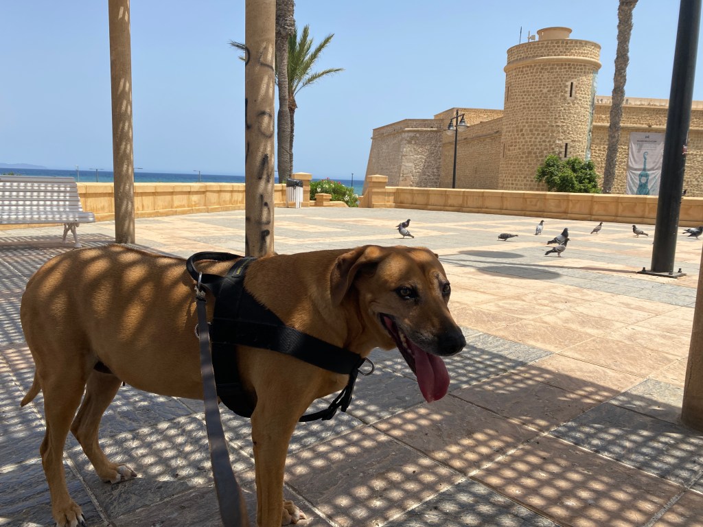 Istendenfor å kjøre motorveien, A7, tok vi turen langs kystveien og alle plastkorridorene, deretter veien gjennom Almeria sentrum. Vi hadde planlagt å stoppe å besøke et av drivhusene og de største grønnsaksprodusentene, ikke minst, se det berømte og imponerende slottet Alcazaba. Men, igjen så var det for varmt, både for to- og spesielt for de firbeinte. Det var alt for varmt å la dem sitte i bilen, og ute var det 38 grader, og det aller største problemet, asfalt som er brennhet og svir sarte poter.