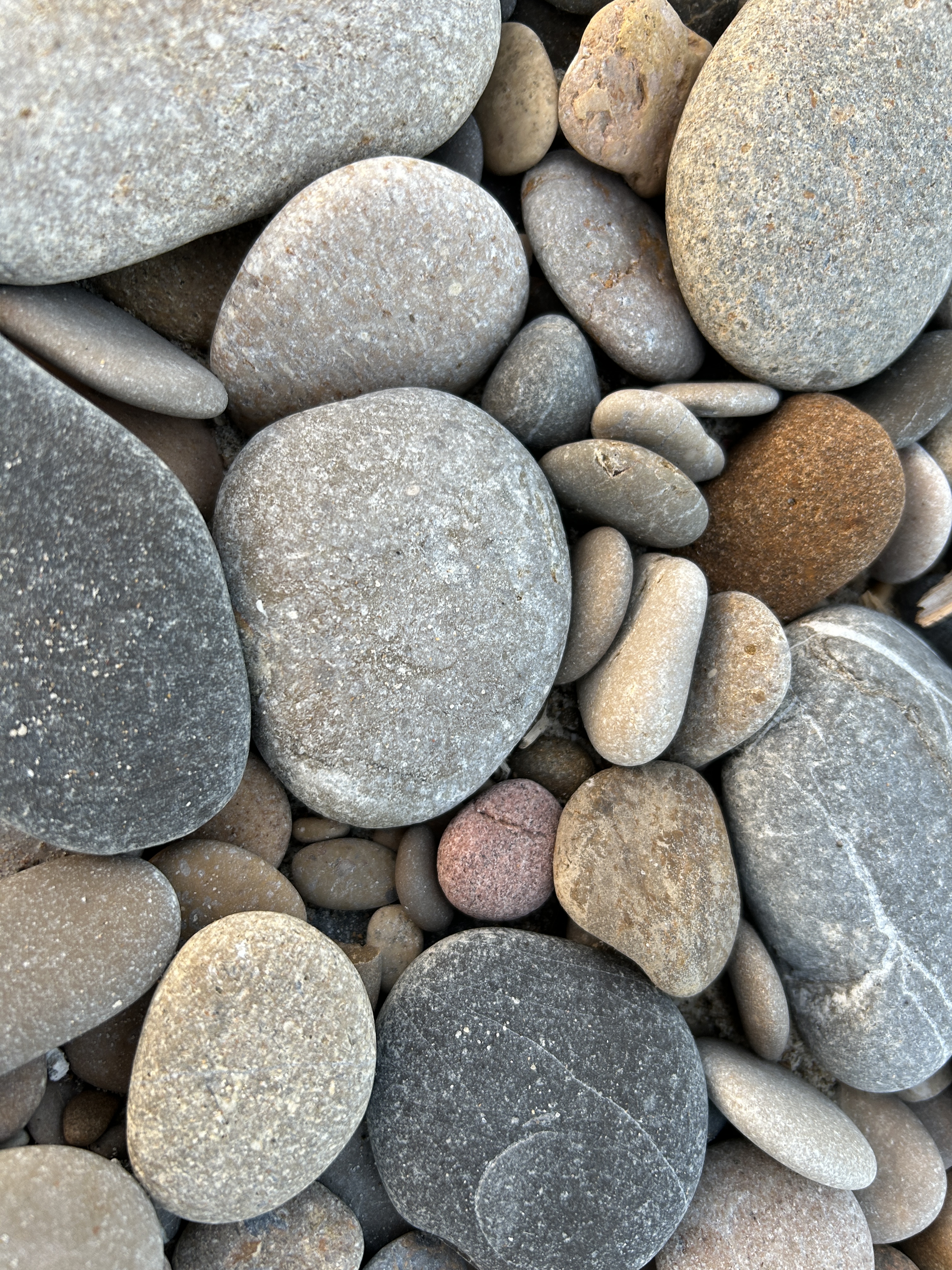 Stranden Playa Malvarrosa er en skjult perle i seg selv. Her er det ingen turister, bare lokalbefolking. Det er vel fordi den ikke har noe særlig med sand, men til gjengjeld noen fantastisk flotte steiner i alle farger.