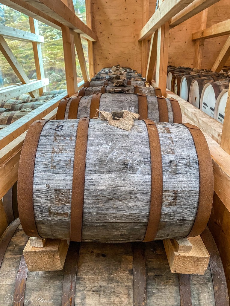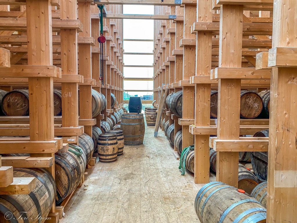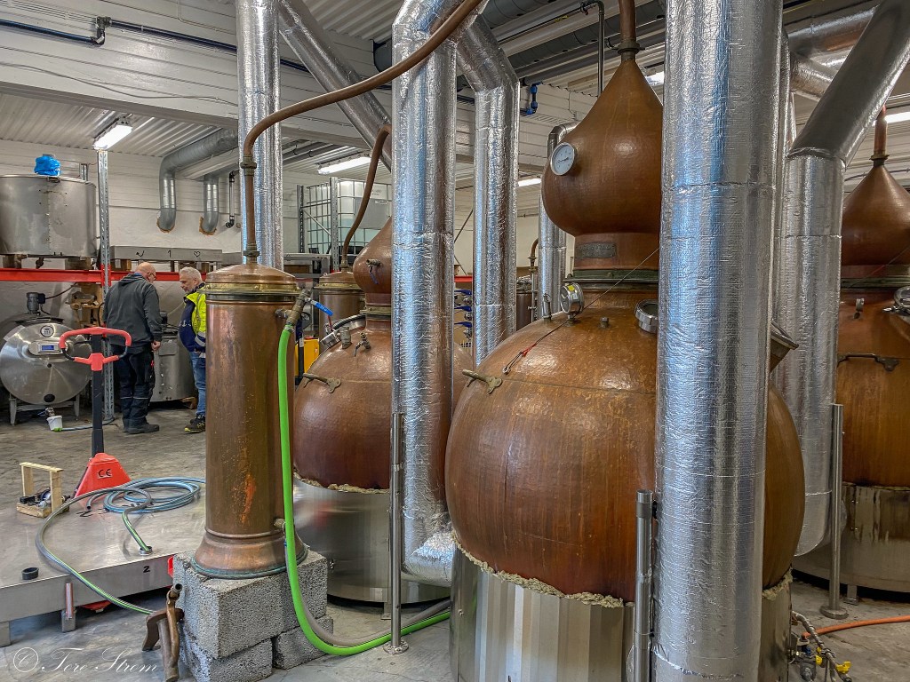 Vi har forhåndsanmeldt ankomsten og blir tatt imot av entusiastiske innehavere som forteller om Myken, destilleriet, produktene – gin og whisky – og vi får en behørig omvisning både i produksjonslokalene og i «Whiskykatedralen», der de edle dråpene modnes i gamle eikefat importert fra det store utland. Selve Katedralen vant Nordnorsk arkitekturpris i 2023, der juryen blant annet skrev følgende: