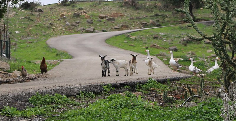 Jeg angret umiddelbart på at jeg ikke hadde tatt med meg noe kamerautstyr på denne korte bilturen hjem. Først opp en bratt grusvei som vaskes ut av regnet hver vinter, ut på asfalten, der måtte vi kjøre slalåm mellom fire bikkjer, de bor i huset rett over veien sammen med spesiell fyr. Han må være i 60-årene en plass, eller eldre, treffer han av og til oppe i landsbyen der han løper gatelangs med et muldyr på slep og hundeflokken løpende etter, kødder ikke. I dag sto muldyret med hodet over det rustne piggtrådgjerdet og siklet på det tørre gresset på den andre siden av gjerdet, akkurat som om det tørre, gule gresset skulle være grønnere på den andre siden av det brutale gjerdet.