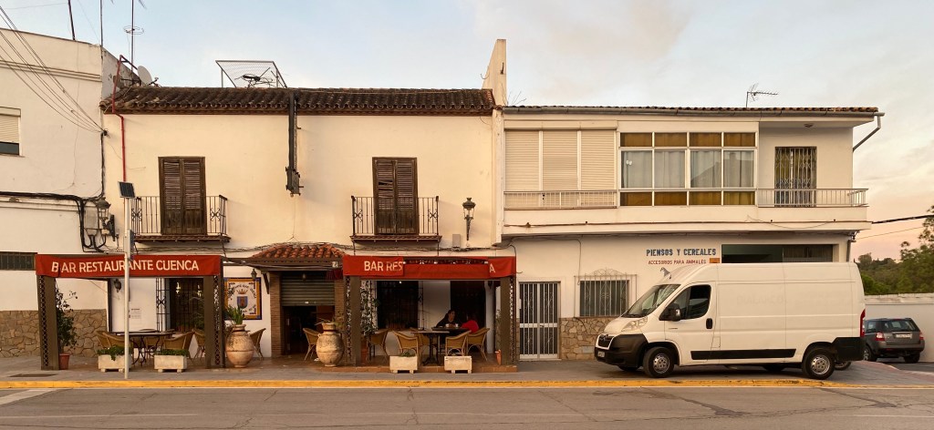 Fyrer i gang Pandaen og svinger ut i gata, 50 meter lenger fremme ligger det travleste krysset i landsbyen, finnes ingen lyskryss i Jimena. Til høyre ligger den største matbutikken, Ruiz Galan, med betjent kjøtt og delikatessedisk, veldig tradisjonell, foretrekker å handle her for å trimme spansken, ingen her som snakker engelsk eller norsk – som er vanlig flere andre steder i Spania. Til venstre har det åpnet en ny bar. Stedet ble egentlig bygget som bakeri rett før covid, men de fikk ikke åpnet på grunn av nedstengningen. Nå sitter det folk på patioen med duggfriske drikkevarer i glassene. I sidesynet får jeg øye på flere små hekser og trollmenn på vei ut fra Luna Bazar, en kinasjappe med trivelige innehavere som bokstavelig talt selger alt mellom himmel og jord, det er så trangt der inne at to personer ikke kan passere hverandre mellom reolene. Får vi besøk, er dette en av severdighetene.