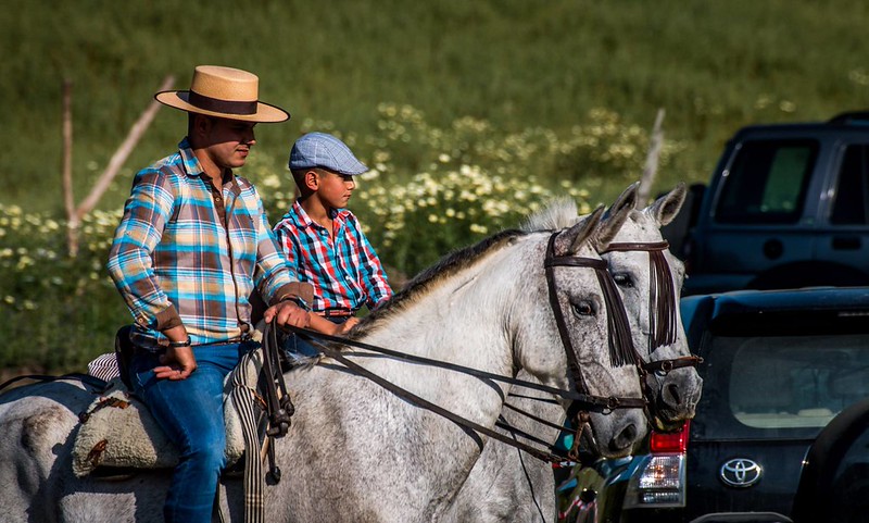 Her kjører ikke ungdommen moped og motorsykkel, men strigler hesten, dresser seg opp i tettsittende skjorte og bukser med bredbremmet stråhatt på hodet, og tar seg en ridetur gjennom gatene for å imponere damene. På andre siden av veien, er et lite jorde med oliventrær. I kveldslyset blir det stor kontrast mellom det strågule gresset og trærne med svarte stammer og, unødvendig å nevne, olivengrønne kroner.