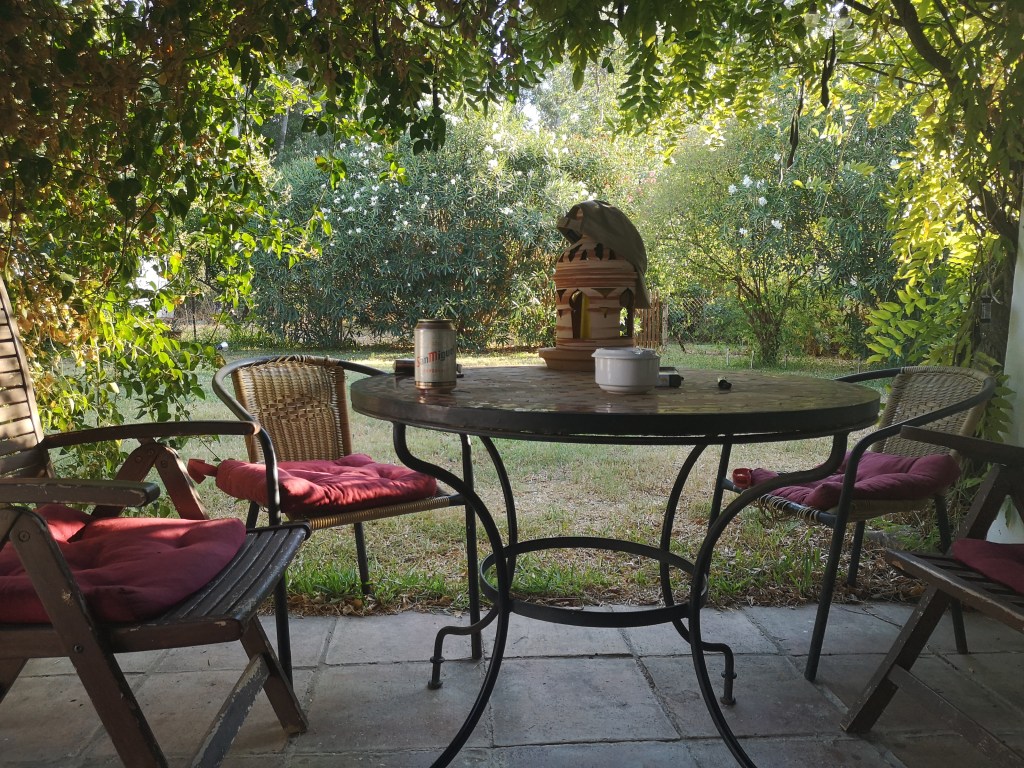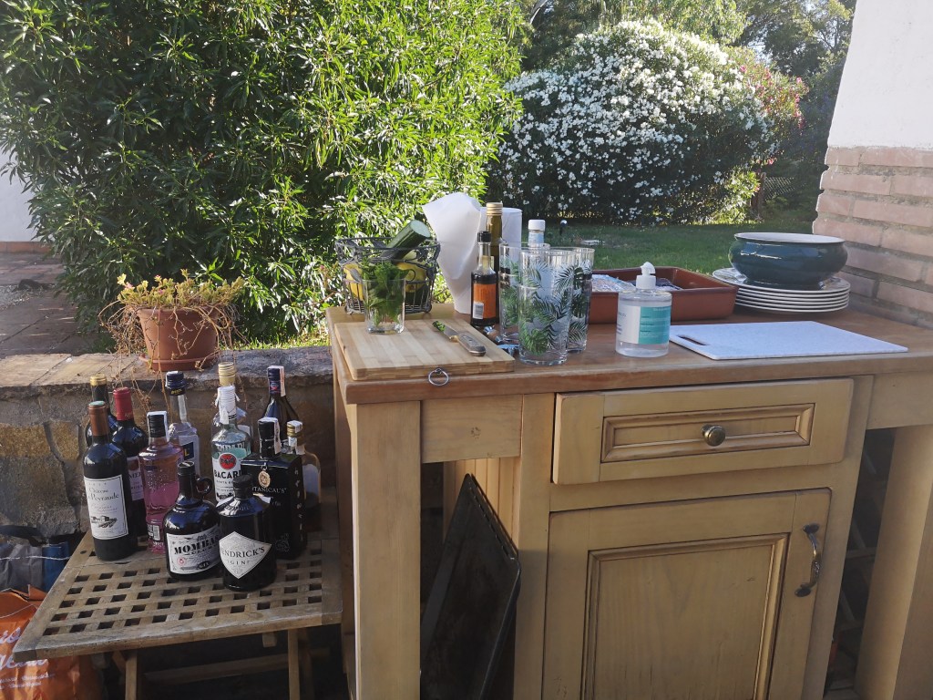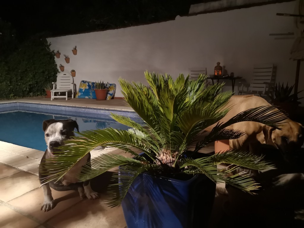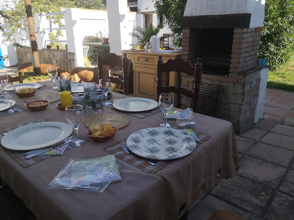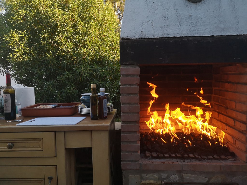 Miércoles eller Onsdag på norsk er vår lille utendørs restaurant, ideelt for 6 gjester, med utsikt langt inn i hagen, nært bassenget og med oppmurt grill/peis. Det er ikke så mange permanente planter her, fordi med hvite vegger og en pergola som bare er dekket av netting, er sommersolen drepende og ikke engang en kaktus kan vokse her midt på sommeren.