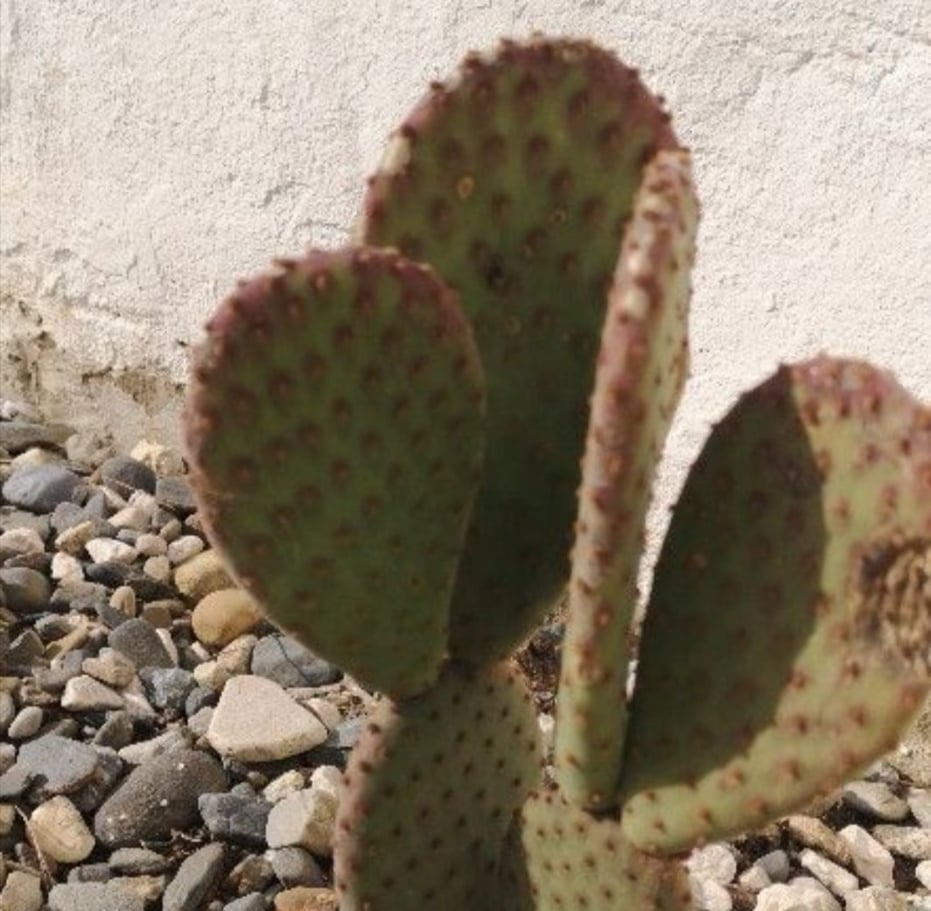 MINNI MUS er en variant av englevingekatusen (opuntia microdasys). Denne kjøpte vi på Salinas i San Pablo sommeren 2021. Den heter Minni Mus fordi vi har en annen variant som Emil døpte Mikke Mus da han kjøpte den på Plantasjen hjemme i Norge for 15 år siden. Vi tok med oss en avlegger hit for 3 år siden, som nå er kjempestor og som du finner på området Miércoles – (Onsdag).