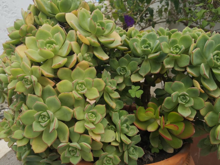 MEGAN er en sukkulent i bergknappfamilien og en av de mange artene av aeonium (Aeonium haworthii). De ulike variantene har helt sikkert egne navn, som jeg skal finne ut av senere. Vi fikk den av Marilyn & John og derfor er den oppkalt etter hunden deres Megan.