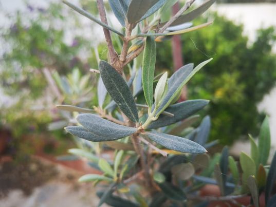 BJØRN – Oliventre (Olea europaea) var også en gave fra svigermor, så da måtte vi jo like gjerne oppkalle dette etter kjæresten hennes Bjørn. Fra før var det noen ville oliven, men de fjernet vi og plantet dette midt foran huset så det en vakker dag blir husets tuntre.
