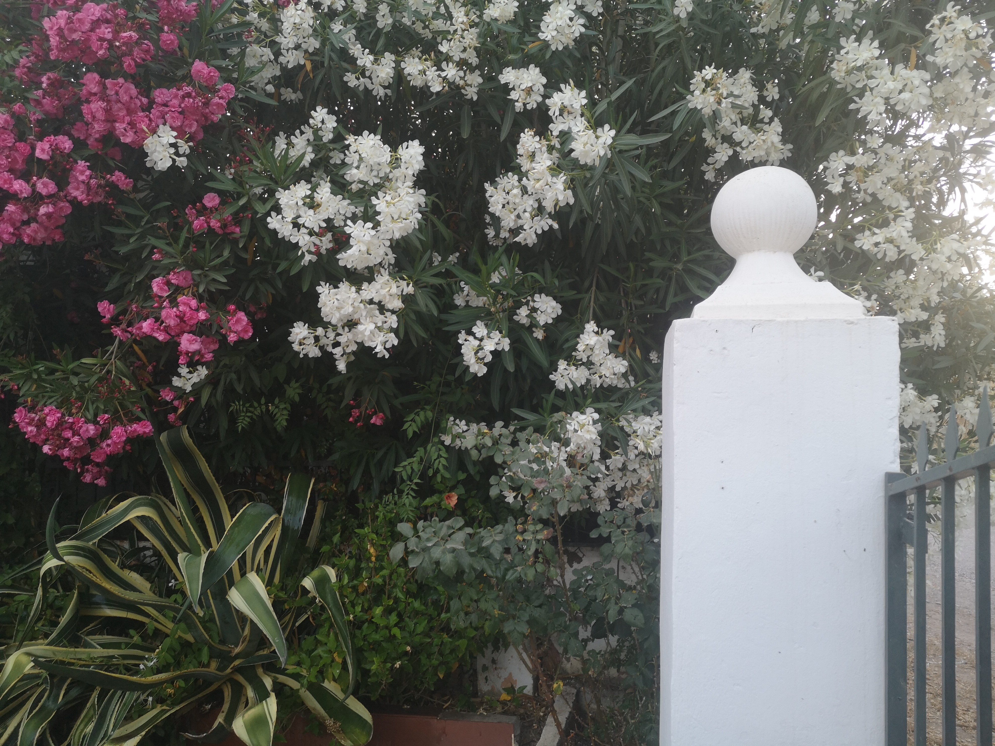 Langt ute på den Andalusiske landsbygda, ikke så langt fra den autentiske lille landsbyen Jimena de La Frontera, nærmere Afrika enn Malaga, har vi vår skjulte perle, fristed og spanske hjem, «Casa de La Adelfa». Navnet betyr noe slikt som Oleanderens hus, eller Oleanderens hjem, og kommer nettopp av at hagen preges av at det vokser så mye Oleander her. Hagen som er på ca. 1.5 mål, er inndelt i 7 områder med ulike tema og bruksområder, og har blitt oppkalt etter de 7 ukedagene på spansk. I tillegg har vi en liten grønnsakshage «Huerta». Velkommen til en liten omvisning i vår deilige spanske hage.