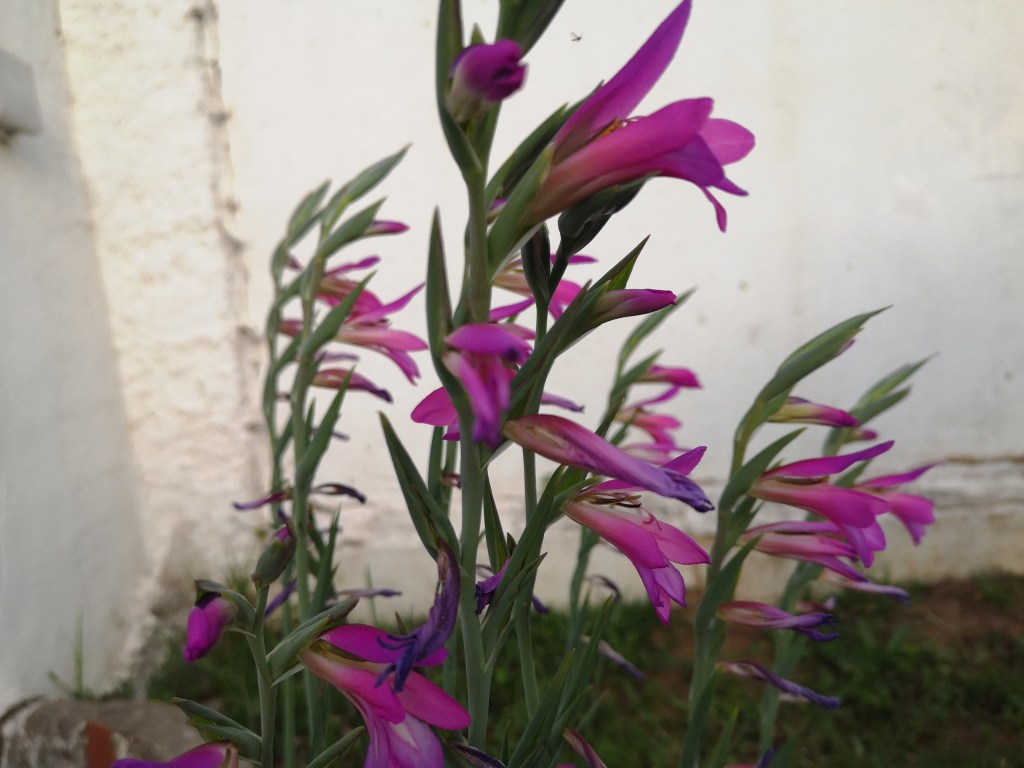 GLADIOLA – er en nydelig gladiol/sverdlilje (Gladiolus italicus) som vokser vilt på enger og åkre, og som i denne delen av verden rett og slett blir sett på som et ugress. Her blomstrer den til vår store glede i bedene på forside. Etter min mening finnes det ikke ugress, bare planter på feil sted.