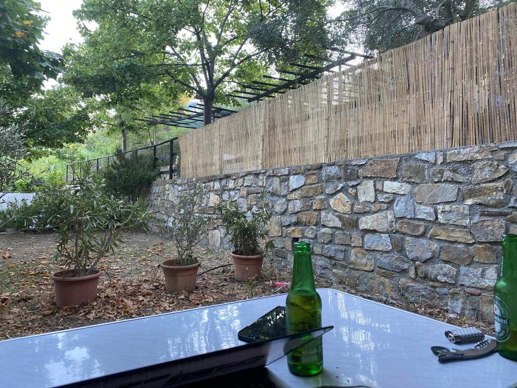 Det fant vi på en merkelig plass i en liten landsby oppe i innlandet, Sasso du Bordighera, Camping A Bunda.  Her bor vi i terrasseblokk i fjellsiden med naboen under fra Belgia og naboen over fra Spania. Og så, har vi selvfølgelig som i alle italienske landsbyer et klokketårn som slår 1 slag hver kvart time, 2 når den er halv og en hel melodi hver hele time