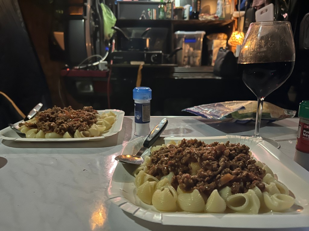 Vår første kveld i italia og avrunder selvfølgelig dagen med rødvin og italiensk bolognese fra Lasses kjøkken.