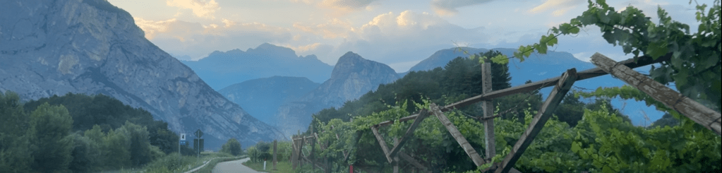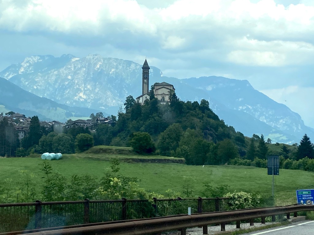 Vi tok et lite stopp i landsbyen Montagna for å strekke litt på føttene. Denne byen ligger ved foten av Dolomittene med en spektakulær utsikt over dalen Val dÁdige. Dette området er faktisk tospråkelig, så både tysk og italiensk er offisielle språk.
