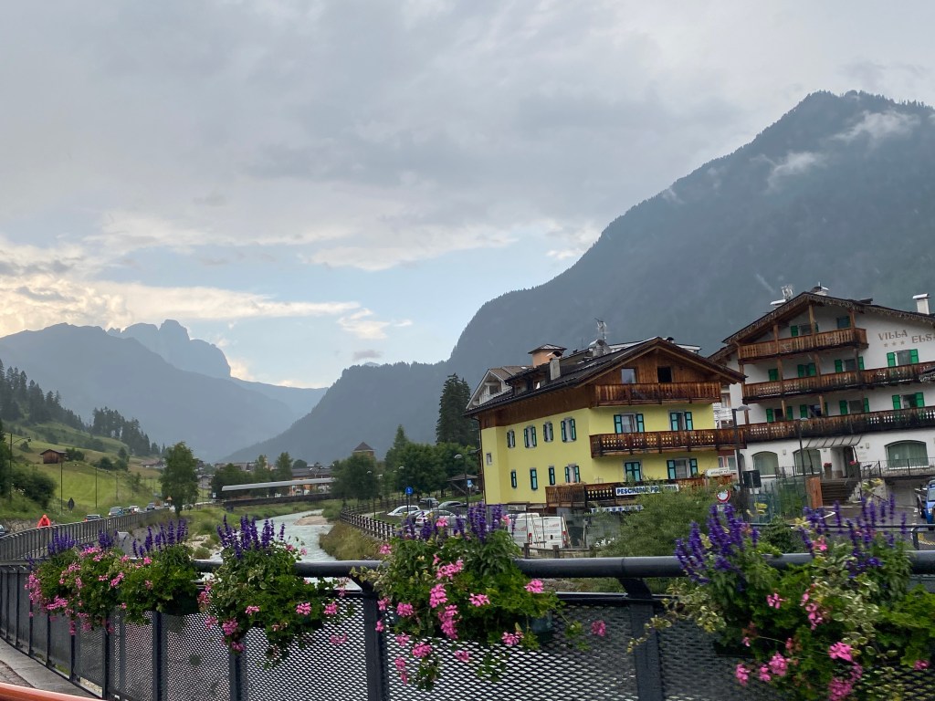 Montagna ligger i Syd-Tirol og det er jo lett å se på de tradisjonelle husene med blomsterkasser. Blomstene er så bugnende og friske at du nesten kan lure på om de er ekte. De må brukt mye tid på blomstene sine.