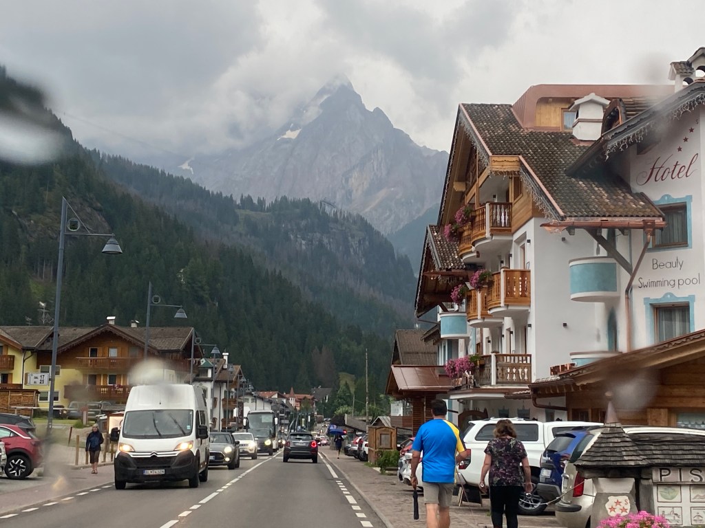 Turen gikk knirkefritt forbi og delvis gjennom Cortina d’Ampezzo, en av de mest berømte og eksklusive fjellbyene i Italia. Cortina har en lang historie som strekker seg tilbake til romertiden, men byen begynte virkelig å blomstre på 1800-tallet, da den ble et populært reisemål for aristokratiet og jetsettere. Byen har vært vert for viktige internasjonale arrangementer, inkludert Vinter-OL i 1956, som bidro til å sette den på det globale kartet som et ledende skisenter. Men, vi hadde verken tid eller lyst til å stoppe. Vi ville komme oss litt lenger nord for å slippe unna regnet som var ventet til natten.