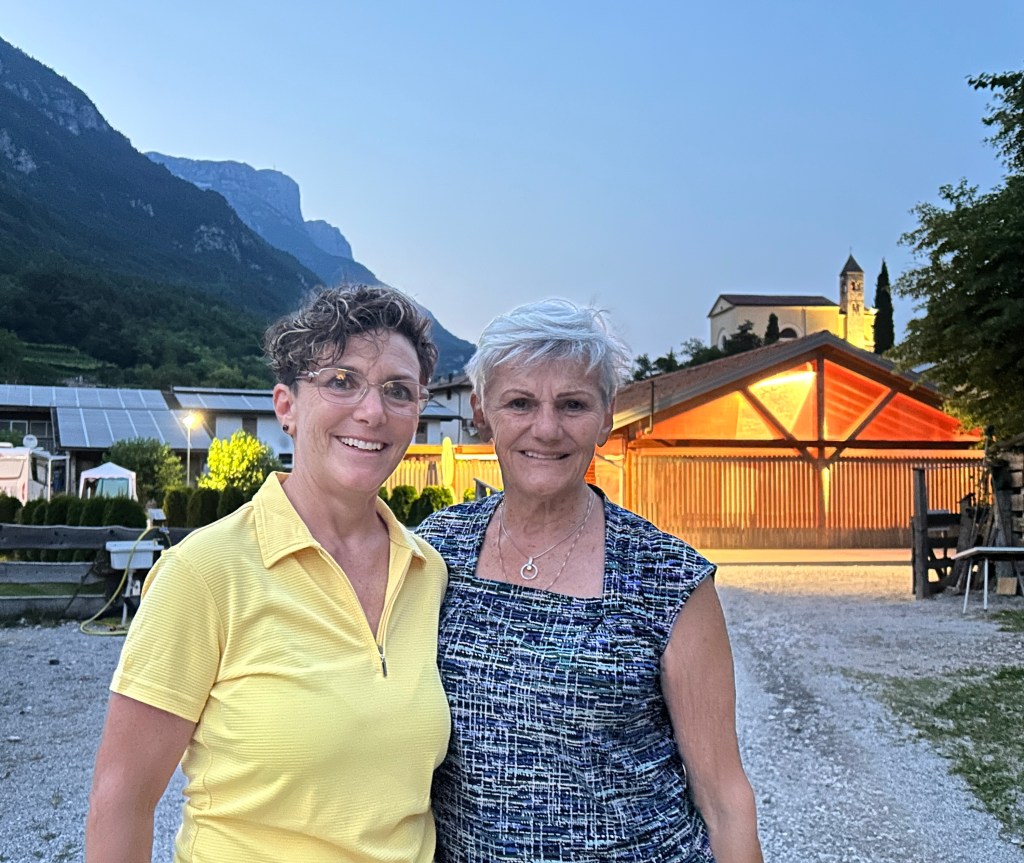 Den tøffe og spreke Tina som driver gården og hennes mor Olga, som er fra Covelo, men som bor i Florida, USA. Hun er 80 år og har tatt den lange turen helt på egenhånd, men sa det ble siste gang, fordi det var så mye styr med apper og ny teknologi, ja det forstår jeg godt, jeg har ikke engag fylt 60 og synes at det har blitt alt for mye. Olga flyttet til USA og giftet seg, så barna er oppvokst der, men hun var glad for at Tina, som dro tilbake til besteforeldrene i Coveleo i Italia på ferie, fant seg en kjekk lokal mann og flyttet tilbake. Jeg forstår så godt at hun gleder seg over det.