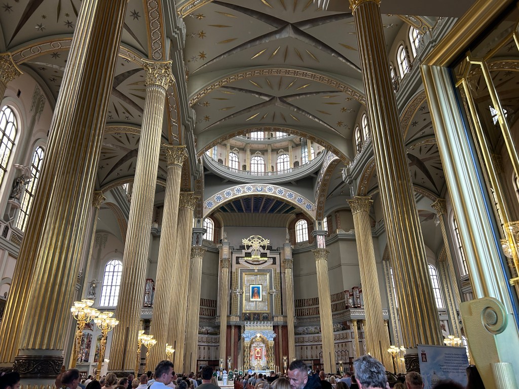Basilikaen er like imponerende innvendig som utvendig og har en kapasitet på opptil 25 000 mennesker. Orgelet i basilikaen er også det største i Polen, det tredje største i Europa og blant de største i verden.