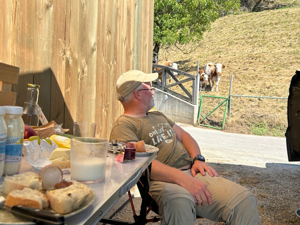 Vi kunne få stå så lenge vi ville, og vi skulle så gjerne ha stått noen dager, men det hadde vi jo dessverre ikke tid til. Men, likevel, vi ble til langt ut på ettermiddagen, tuslet en tur rundt innsjøen og fikk gjort unna noen timer med arbeid fra vårt flotte utekontor.